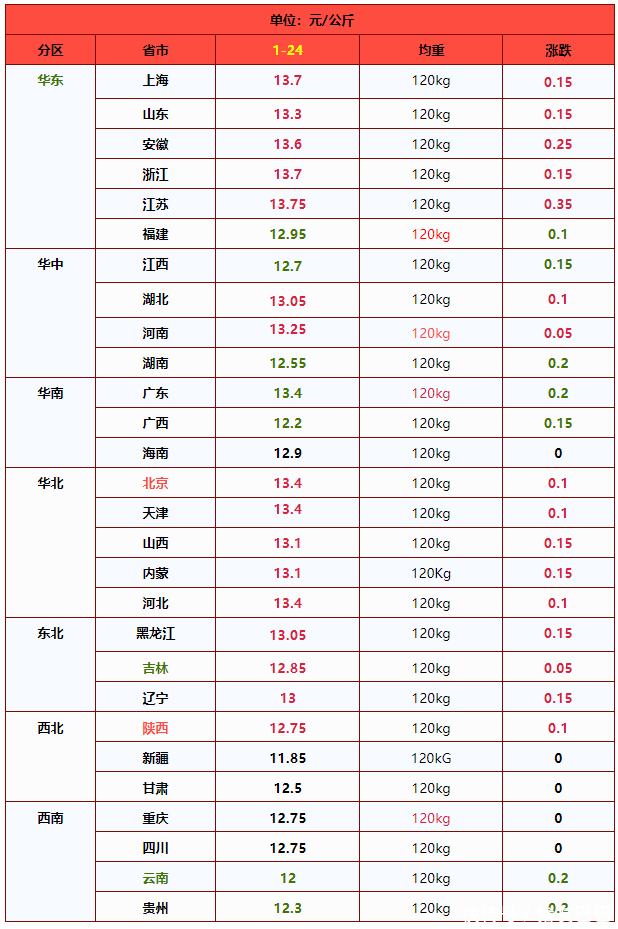 由此分析,在多空博弈下,当前,猪价呈现一定僵持的局面,受屠宰场调价,预计,1月24日,外三元标猪报价在12.89元/公斤,上涨0.02元,后市关注集团猪企出栏节奏的变化!